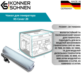 Вологостійкий та пилозахисний чохол для генератора. Підходить для всіх моделей бензинових генераторів серії KS 5000, KS 7000, KS 9000, KS 10000, та для моделей дизельних генераторів серії KS 6000, KS 8000, KS 9000 (крім моделей KS 8200HDES-1/3 ATSR, KS 9200HDES-1/3 ATSR).
