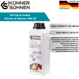 Високоякісна напівсинтетична моторна олива вiд ТМ «Könner & Söhnen» для бензинових та дизельних двигунів.