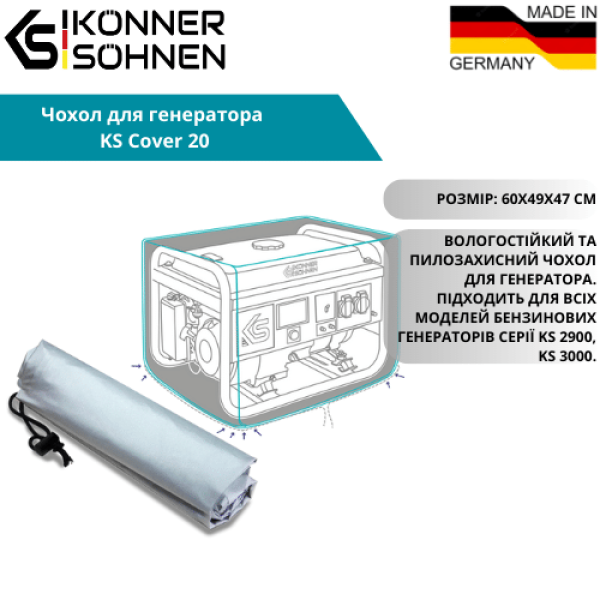 Вологостійкий та пилозахисний чохол для генератора. Підходить для всіх моделей бензинових генераторів серії KS 2900, KS 3000.