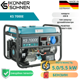 | Бензиновый генератор Könner & Söhnen KS 7000E 1/3 | 41399 грн. |