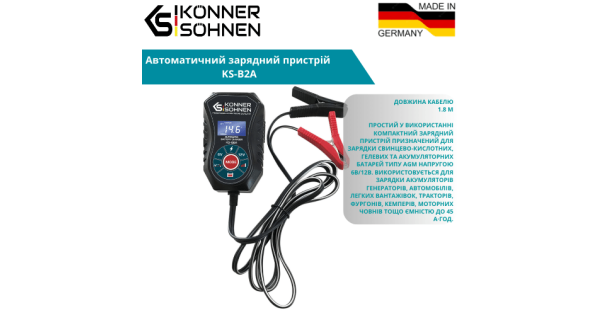 Простий у використанні компактний автоматичний зарядний пристрій призначений для зарядки свинцево-кислотних акумуляторних батарей генератора.