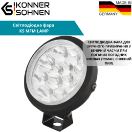 Світлодіодна фара KS MFM Lamp забезпечує яскраве освітлення для роботи в темряві та поганих погодних умовах. Легкий монтаж без додаткових інструментів. Сумісна з моделями KS 7HP-MFM-60 і KS 7HP-MFM-80Е для максимального використання. Якісні світлодіоди забезпечують тривале та ефективне освітлення робочої зони. Підвищує комфорт і безп..