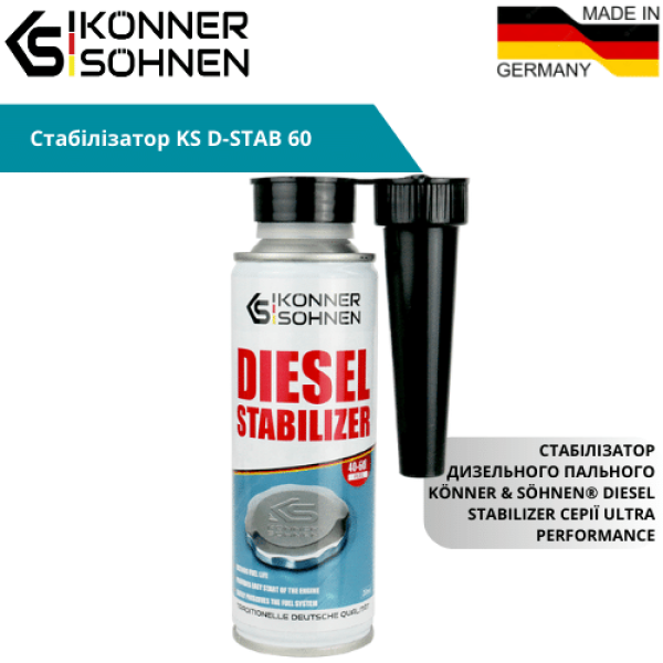 Стабілізатор дизельного пального Könner & Söhnen Diesel Stabilizer серії ULTRA Performance - це продукт, призначений для покращення якості і зберігання дизельного пального, а також для захисту паливної системи та пального нафтонасоса високого тиску в дизельних двигунах. Основні особливості і характеристики цього стабілізатора такі: